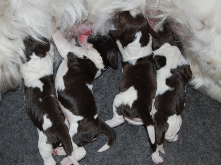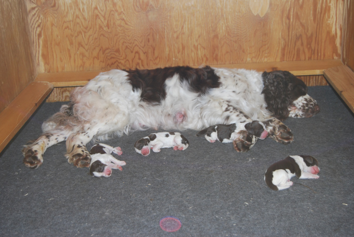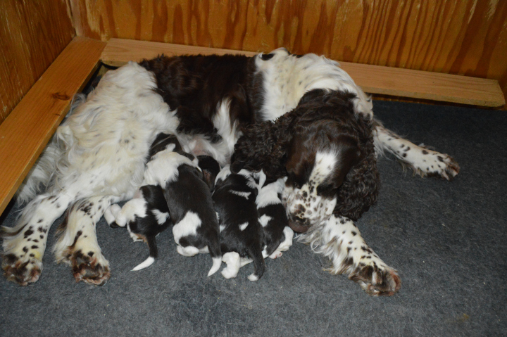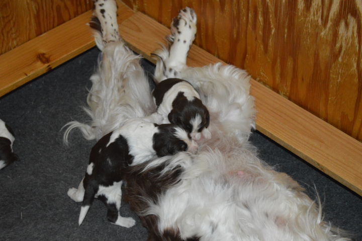 Mom and babies are doing well. Puppies will be two weeks on Monday, and