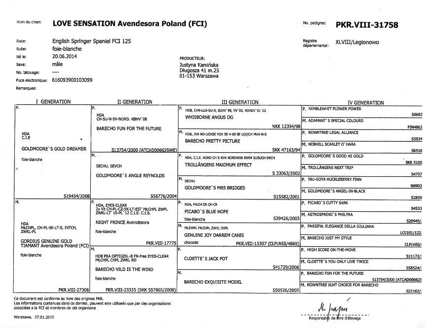 Pedigree for LOVE SENSATION Avendesora Poland (FCI)
